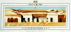 Der Vorhof wurde horizontal in den Felsen geschnitten, wobei die Fassade durch acht unregelmäßig-viereckige Pfeiler gebildet wird. Die dahinter liegende Querhalle ist 20 m lang und 2,6 m breit und in der Mitte der Westwand führt ein Durchgang über eine Schwelle und eine Türkammer (allerdings ohne nachweisbare Tür) in die Längshalle, in deren hinterem Teil sich ein Schacht befindet. An die Längshalle schließt sich im Westen die Statuenkammer an, in der sich vier überlebensgroße Sitzstatuen befinden.[2]