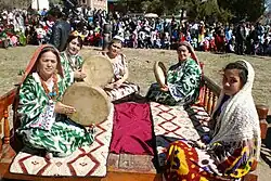 Mit 84,3 % Bevölkerungsanteil (2010) bilden die Tadschiken, ein iranisches Volk, die Mehrheit. Etwa 13,8 % der Bevölkerung sind Usbeken und etwa 0,8 % Kirgisen. Weitere Minderheiten sind Russen (0,5 %), Tataren, Ukrainer, Deutsche, Koreaner und andere. Nach seinem Austritt aus der Sowjetunion und im Verlauf des anschließenden Bürgerkriegs haben viele Nicht-Tadschiken das Land verlassen. Lebten 1989 noch fast 400.000 Russen in Tadschikistan, so waren es 2005 noch knapp 140.000. Viele Bucharische Juden und Aschkenasen (1989 noch etwa 15.000 Menschen) verließen das Land, so dass sich die Gesamtzahl der Juden Tadschikistans auf rund 1000 reduzierte.[18] Ein Teil der Auswanderer wurde 1992 in einer von der Allgemeinheit kaum beachteten so genannten Luftbrücke nach Israel ausgeflogen.[19] Der Anteil der Tadschiken stieg von 62 % im Jahr 1989 auf fast 80 % im Jahr 2000.[20]