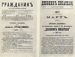 Nachdem er die Schriftleitung des Graschdanin im April 1874 niederlegte, erschien auch das Tagebuch zunächst nicht mehr.[5] Vom Januar 1876 an brachte Dostojewski es jedoch als selbstständiges Periodikum und auf eigene Rechnung heraus.[6] Eigene literarische Arbeiten, die er in dieser Zeit im Tagebuch veröffentlichte, waren die Novelle Die Sanfte (November 1876) und die Erzählung Der Traum eines lächerlichen Menschen (April 1877).[7]