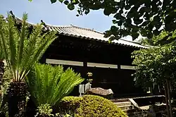 Den auf einer Anhöhe gelegenen Tempel erreicht man über eine längere Treppe und hat dann die mit Ziegeln gedeckte Haupthalle (本堂, Hondō; 1) vor sich. Sie stammt aus der Kamakura-Zeit, überstand verschiedene Brände und ist das älteste Holzgebäude der Präfektur. Zusammen mit einem Schrein ist die Halle als Nationalschatz Japans registriert. Rechts davon steht die schlichte Halle, die dem Tempelgründer gewidmet ist, die Daishidō (大師堂; 2). Dahinter ist am Berghang ein Friedhof (F) angelegt. Auf dem Gelände steht ein kleiner achteckiger Pavillon, die Yumedono (夢殿; 3). Diese „Halle der Träume“ weist mit ihrem Namen auf die berühmte „Halle der Träume“ hin, die Prinz Shōtoku am Tempel Hōryū-ji errichten ließ. Auf der Nähe steht auch der Glockenturm (鐘楼, Shōrō; 4) des Tempels.