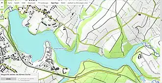 Die Talsperre liegt in der Deutschsprachigen Gemeinschaft (DG) in Belgien im Gebiet der Gemeinden Büllingen und Bütgenbach, zwischen den Dörfern Bütgenbach, Berg und Wirtzfeld. Auf der Seite des Dorfes Bütgenbach, direkt vor der Einfahrt auf die Sperrmauer, kann man noch Mauerreste der ehemaligen Burg Bütgenbach sehen.