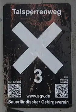 Der Talsperrenweg ist ein Anfang des 20. Jahrhunderts geschaffener Hauptwanderweg im Vereinsgebiet des Sauerländischen Gebirgsvereins und besitzt wie auch all die anderen Hauptwanderstrecken als Wegzeichen das weiße Andreaskreuz X, an Kreuzungspunkten um die Ziffer 3 erweitert.