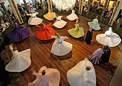 In der islamischen Mystik bedeuten die tanzenden Derwische den Weg zu Gott. In der ganzheitlichen Mystik werde der Mensch erschüttert und überwältigt – und er spüre das verlorene Zentrum des Lebens: Gott.[3] Beim Tanz ist die rechte Hand nach oben, die linke nach unten geöffnet, was den Empfang und die Weitergabe der göttlichen Gnade an die Lebewesen symbolisiere.[4] Die Schöpfung würde eines Tages an dem Tanz der Derwische teilnehmen.[5]