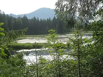 | Der Taubensee von Nordwesten mit typischer Verlandung | ||