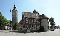 Das Kurmainzische Schloss Tauberbischofsheim (auch Schloss Tauberbischofsheim, ehemalige Burg bzw. Stadtburg in Bischofsheim[1]) in Tauberbischofsheim im Main-Tauber-Kreis hat seinen Ursprung in einer mittelalterlichen Stadtburg aus dem 13. Jahrhundert, von der heute nur noch der Bergfried, genannt Türmersturm, erhalten ist. Im 16. Jahrhundert ersetzte man die Burg durch das kurmainzische Schloss, das den Türmersturm von allen Seiten her einrahmt. Das Schloss diente als Sitz der erzbischöflichen Amtmänner des Mainzer Kurstaates und beherbergt heute das Tauberfränkische Landschaftsmuseum.[2]