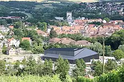 Mit Sichtachsen zum Schloss Weikersheim und der Stadtkirche St. Georg steht das neue Gebäude in Dialog mit dem auf der anderen Tauberseite gelegenen Stadtkern von Weikersheim.