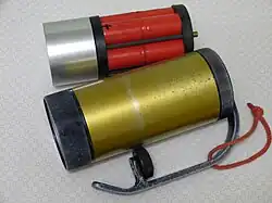 Teilweise werden in Taucherlampen große nickel- oder eisen­haltige NiMH- respektive Lithium-Eisenphosphat-Akkumulatoren als Energiequelle eingebaut. Das stark ferromagnetische Eisen oder Nickel kann eine Abweichung der Nadel eines Kompass bewirken, den der Taucher für die Navigation mit sich führt. Den gleichen Effekt verursachen Magnete, die oft an Tauchlampen angebracht werden um sie mithilfe eines Reed-Relais ein- und auszuschalten.[2] Ein Reed-Relais hat den Vorteil, dass keine Durchführungen durch das Gehäuse notwendig sind, die entsprechend abzudichten wären, weil es mit einem Magnet durch die Wandung geschaltet werden kann.