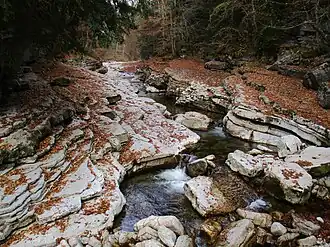 Der Tauglbach erodiert lagigen Kalkstein (2013) | ||