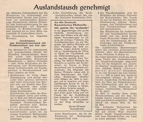 Eine Verfügung vom 3. Mai 1954 regelte dann erstmals den Briefmarken-Tauschverkehr in der DDR: