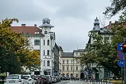 | Tavčarjeva ulica, Blick von Miklošič-Park zur Slovenska cesta | |