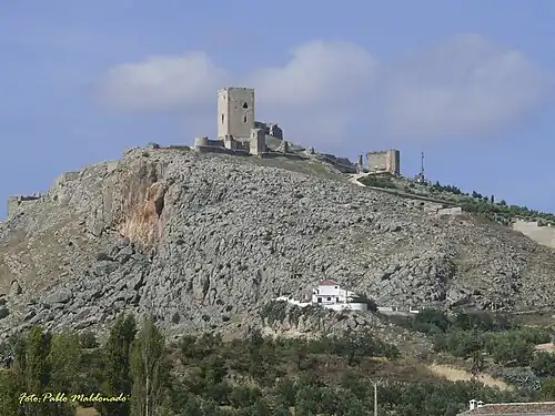 - Von der mauerumgürteten maurischen, später christlichen Festung auf dem Burgberg (Castillo de la Estrella), dem größten in der Provinz Málaga, sind nur wenige Reste erhalten; der auf quadratischem Grundriss errichtete Bergfried (torre del homenaje) überragt die Anlage.[8][9]