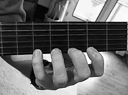 - Es besteht kein Kontakt zwischen Handfläche und Griffbrett