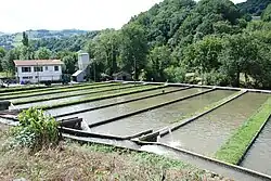 • In der Forellenteichwirtschaft (FTW) werden meist langgezogene Teiche oder auch betonierte Kanäle mit kühlem, sauerstoffreichem Frischwasser durchströmt. Die Fische werden mit künstlichem Futter ernährt. Das Wasser sorgt für die Abfuhr der Exkremente. Gehalten werden so Fischarten aus Fließgewässern, also Regenbogenforellen, Bachforellen, Saibling, seltener Äsche und Huchen. Aus landwirtschaftlicher Sicht entspricht die Forellenteichwirtschaft einer dichten Stallhaltung mit reiner Fütterung.
