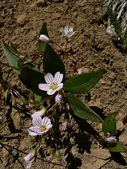 - Claytonia parviflora Douglas ex Hook.: Sie ist mit vier Unterarten im westlichen Nordamerika beheimatet.