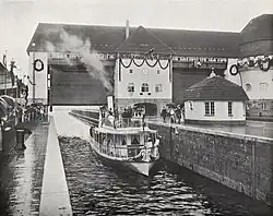 Der erste Spatenstich erfolgte am 22. Dezember 1900 in Babelsberg, einzelne Abschnitte wurden in den Folgejahren schrittweise angelegt und zu Teilen in Betrieb genommen. Die Schleusen wurden bereits elektrisch betrieben, ihre Erprobung erfolgte im August 1905. Als Antrieb der gesamten Anlagen errichtete die Kanalbau-Gesellschaft ein eigenes Kraftwerk, in dem Dampfmaschinen den elektrischen Strom erzeugten.[4]