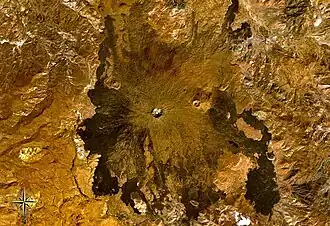 Der Tendürek Dağı (kurdisch Çiyayê Tendûrekê, armenisch Թոնդրակ} Tondrak) ist ein ruhender Schildvulkan in der türkischen Provinz Ağrı im Landkreis Diyadin nahe der iranischen Grenze. Eine Namensvariante lautet Tendürük. Er ist mit 3533 m[1] einer der höchsten Berge des Landes. Der Berggrat verläuft in ostwestlicher Richtung. Der Tendürek besitzt zwei Kegel und am Osthang einen Kratersee mit 500 m Durchmesser und ist der aktivste Vulkan der Türkei. Sein letzter Ausbruch von Gas und Asche erfolgte im Jahre 1855.[2] Die Ausbrüche und die Entstehung des Vulkans hinterließen breite Lavaströme, die heute 500 km² bedecken.[3] An der Ostflanke stößt der Berg Wasserdampf und Schwefeldämpfe aus, was die Umgebung des Kraters gelb verfärbt hat. Die Temperatur des Dampfes beträgt 60 °C. Am Fuß des Berges entspringt der Fluss Bendimahi.