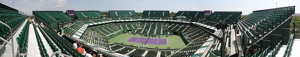 Der Hauptplatz, der Stadium Court, bietet 13.800 Plätzen und wurde 1994 fertiggestellt. Eigentlich sollten schon 1993 die Arbeiten abgeschlossen sein, dies verhinderten aber Verzögerungen durch den Hurrikan Andrew im August 1992.[1] Er erweiterte die bereits bestehende Anlage am Crandon Park. Das erste Spiel auf dem Center Court wurde am 11. März 1994 zwischen Karin Kschwendt und Kathy Rinaldi Stunkel im Rahmen des WTA-Miami-Turniers bei den The Lipton Championships 1994 ausgetragen, das Kschwendt mit 6:3 und 6:4 gewann.[1] Die Anlage besteht aus insgesamt 27 Plätzen, davon sind 21 Hartplätze sowie sechs Sandplätze. Dreizehn der Plätze besitzen ein Flutlicht.[2]