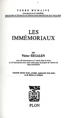 - Victor Segalen: Les Immémoriaux, 1956 (1993); ursprünglich 1907. [dt. Die Unvordenklichen]