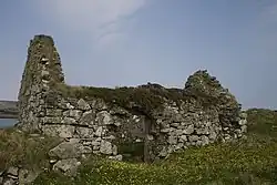 Das Gebäude befindet sich auf einer Anhöhe nahe der Landestelle der Insel. Es scheint sich um das Zentrum einer landwirtschaftlichen Siedlung gehandelt zu haben. Die Kirche stand auf einem Gelände von 28 × 19 m2 Fläche, das von einer Mauer umfriedet war. Sie selbst maß 8,8 × 4,1 m2 und besaß etwa 80 cm mächtige Mauern. Licht trat durch Winkelfenster in den Nord- und Südmauern ein, die wahrscheinlich rechteckig und von Sandstein gerahmt waren. Der Eingang befand sich an der Südseite. An der Südwestecke schloss sich direkt ein kleines Nebengebäude an. Südlich befand sich der Friedhof.[1] Von der Kirche sind heute nur noch Mauerreste erhalten.