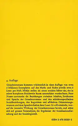 - Band 27: Peter Nusser: Romane für die Unterschicht. Groschenhefte und ihre Leser. 1973 (5. Aufl. 1981)