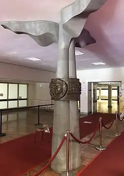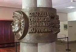 Die Plastik stellt einen 3,40 Meter hohen Fahnenbaum aus mattiertem Edelstahl dar, der vom Fußboden bis zur Decke des Foyers reichte. Sie ist von einem Bronzerelief in Ringform umgeben. Das Relief zeigt ein Porträt Thälmanns und den Text: