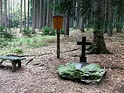 - Ein Gedenkstein neben dem Ehrenhain erinnert an den Kommunisten Max Helbig, der am 1. Mai 1945 erschossen wurde.