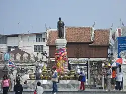 Bis in die 1930er-Jahre wurde Thao Suranari in historischen Aufzeichnungen nur kurz und vage erwähnt. 1932 unternahm eine Gruppe von Militärs und Intellektuellen, die sich „Volkspartei“ (khana ratsadon) nannte, einen Staatsstreich, der die absoluten Monarchie beendete. Die neuen Machthaber hatten den Anspruch, das Land zu modernisieren und demokratisieren. Sie waren bestrebt, die Rolle von Bürgerlichen und von Frauen in der Geschichtsschreibung aufzuwerten. So wurde die Geschichte der Thao Suranari von dem nationalistischen Schriftsteller und Ideologen Wichitwathakan ausgeschmückt und popularisiert.[1][2] Der in Italien geborene und mit dem Regime verbundene Bildhauer Silpa Bhirasri (eigentlich Corrado Ferroci) erhielt den Auftrag, eine Statue zu schaffen.[3] Sie steht seit dem 5. Januar 1934 vor dem alten Stadttor (Pratu Chumphon - ประตูชุมพล) von Korat. Das Denkmal ist ohne Sockel 1,85 m hoch.