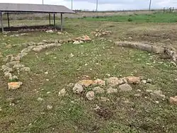 Die bisherigen Ausgrabungen legten zwei Hauptareale der Siedlung frei: Ein nördliches und ein zentrales. Das nördliche Viertel ist vor allem durch einräumige Hütten runden, oft kreisförmigen bis ovalen, teils auch halbkreisförmigen Grundrisses geprägt. Pfostenlöcher, die kreisförmig im Innern der Hütten angeordnet sind, beweisen, dass die Dächer durch senkrechte Holzpfosten gestützt waren. Teilweise hatten Rundhütten rechteckige Anbauten. Zwischen ihnen befanden sich schmale Wege.