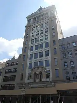 - ↑ Franz Lerchenmüller: Unter Marx und Engels zur Arbeit an die Wallstreet. In: Frankfurter Allgemeine Zeitung. Nr. 107, 9. Mai 2018, S. R 3. „Die Besitzer müssen noch immer jeden Morgen auf ihrem Weg zur Arbeit unter einem prächtigen Marmorbogen mit den Reliefs von Marx, Engels, Lassalle und Liebknecht hindurch.“