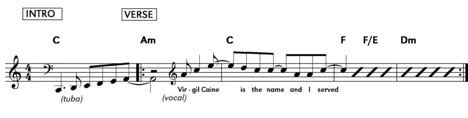 Auf tonaler Ebene dient das Zitat dazu, die Tonart des eigentlichen Stückes, C-Dur, zu etablieren. Diese Tonart wird – zumindest bis zum ersten Refrain – für das Ohr niemals ganz zweifelsfrei bestätigt, denn die verwendeten Begleitakkorde sind alle auch der Tonart F-Dur zugehörig, und auch parallele Molltonarten (A-Moll und D-Moll) könnten das eigentliche tonale Zentrum sein.