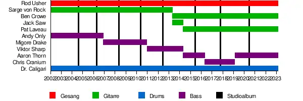 Am 31. Oktober 2012 feierte die Band ihr 10-jähriges Bestehen auf dem Abschlusskonzert der Hellnights-Tour, zusammen mit Blitzkid und den Bloodsucking Zombies from Outer Space. Im Mai 2013 verließ Gitarrist und Gründungsmitglied Sarge von Rock die Band. Da der Ausstieg seit Anfang des Jahres bekannt war, wurden im direkten Anschluss zwei neue Gitarristen, Ben Crowe und Jack Saw, in die Band aufgenommen, die ihr erstes Konzert mit der Band als Tages-Headliner beim Wave-Gotik-Treffen in Leipzig spielten. 2014 verließen Bassist Viktor Sharp und Neu-Gitarrist Jack Saw die Band, um sich eigenen Projekten in anderen musikalischen Richtungen zu widmen, und wurden durch Aaron Torn am Bass und Pat Laveau an der Gitarre ersetzt.