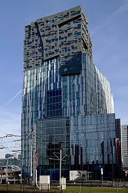 Das Hochhaus besteht aus unregelmäßigen Glas-, Aluminium-, Stein- und Betonelementen. Ausgangspunkt für die Gestaltung war die städtebauliche Idee des Architekturbüros De Architekten Cie., das Hochhaus vertikal in Anlehnung an die Anatomie des menschlichen Körpers in Beine, Torso und Kopf zu gliedern.[3] Die weitere Ausarbeitung erfolgte durch das Büro von Erick van Egeraat. Das fertige Gebäude erweckt den Eindruck, als ob der obere Teil schwerer wäre als der untere Teil. Die Gestaltung ist skurril und erinnert an einen Felsen. Das Gebäude sieht aus jeder Blickrichtung anders aus.