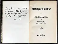Buchtitel: Hinauf gen Jerusalem! - Zehn Kinderpredigten (mit Widmung von Theodor Scheinpflug)