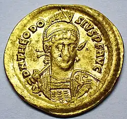 Theodosius II. (altgriechisch Θεοδόσιος Βʹ; * 10. April 401 in Konstantinopel;[1] † 28. Juli 450 ebenda), einziger Sohn der Aelia Eudoxia und des Arcadius, war von 408 bis zu seinem Tod oströmischer Kaiser. Im Codex Theodosianus ließ er die Gesetze und Verfügungen der römischen Kaiser seit 312 sammeln.