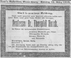 Noack war mit Alzira geb. Fölzer (* 8. Oktober 1857 in Porto Alegre in Brasilien) verheiratet. Aus dieser Ehe gingen die Kinder Ricarda und Hans hervor.