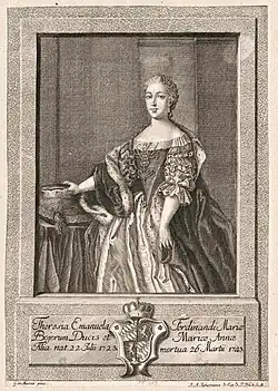 Von Prinzessin Theresia Emanuela existiert ein Porträtstich des Künstlers Joseph Anton Zimmermann (1705–1797)[8] sowie ein Ölporträt eines unbekannten Malers.