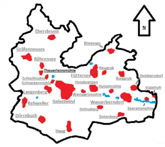 ![]() Lage der Theuerleinsmühle (fett) im Geiselwinder Gemeindegebiet
