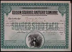 Thomas Alva Edison war mit Henry Ford befreundet, der bei der Edison Illuminating Co. seine Karriere begonnen hatte und von Edison dazu ermuntert worden sein soll, sich im Fahrzeugbau selbständig zu machen. Edisons intensive Beschäftigung mit der Weiterentwicklung der Batterietechnik geht auf die Anforderungen im Automobilbau zurück. Der Elektrifizierung der Automobile stand die unzureichende Batterietechnik entgegen. Die bekannten Bleiakkumulatoren waren insbesondere zu schwer. Auch die Eisenbahnen hatten einen Bedarf an wiederaufladbaren Batterien. Nach Vorarbeiten an dem Edison-Lalande-Element und einer langen Entwicklungszeit mit vielen Rückschlägen wurde der Nickel-Eisen-Akkumulator als Lösung perfektioniert. Die Grundlösung war 1904 gefunden und ging in Produktion. Die Kunden waren zufrieden, Edison machten jedoch die Ausfallraten Sorgen. Er stoppte die Produktion und investierte weitere 5 Jahre Entwicklungsarbeit in Detailverbesserungen. Die Edison Storage Battery Company erzielte bereits im ersten Produktionsjahr eine Million Dollar Umsatz, was den Marktbedarf dokumentiert.[15] Die zahlreich durchgeführten und sorgfältig dokumentierten Experimente wurden eine wichtige Datenbasis für folgende Generationen von Batterieentwicklern.[41] Im Rahmen der Batterieentwicklung konstruierte Thomas Edison Autos und Schienenfahrzeuge mit Elektroantrieb. Er sah in solchen Fahrzeugen den wichtigsten Zukunftsmarkt für Akkumulatoren und elektrische Energie aus Kraftwerken. Die Entwicklung der Verbrennungsmotoren führte aber zu einer Verdrängung der damals von verschiedenen Herstellern angebotenen Elektroautos. Der Wegfall dieses Marktes, der die Entwicklung der Batterie initiiert hatte, wurde jedoch durch die vielfältige andere Nachfrage kompensiert. Die Batterie ersetzte Phonograph und Filmgeschäft als Fundament von Edisons Unternehmen.[42] Eine 1911 entwickelte kompakte Batterie wurde insbesondere die Grundlage sicherer elektrischer Lampen für Bergleute, ein anderes erfolgreiches Produkt von Edison.[p 8] In Deutschland wurde 1904 die Deutsche Edison Akkumulatoren Gesellschaft gegründet.[ep 14] Die Gesellschaft ging in dem heutigen Unternehmen Varta auf.