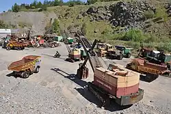 Das Gleis der Feldbahn mit einer Spurweite von 610 mm (2 Fuß) wurde neu verlegt und bietet den Besuchern eine gefahrlose Zufahrt in die Grube, um sich die Steinbrüche anzuschauen. Einige Lokomotiven werden regelmäßig eingesetzt, andere sind im oberen Lokschuppen ausgestellt.