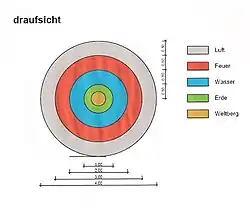 Liste der sechs Länder, Ozeane und Gebirge (von innen nach außen):