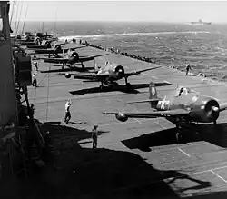 - Bordgeschwader CAG-87; Staffeln VF-87 (F6F-5), VB-87 (SB2C-4E), VT-87 (TBM-3)