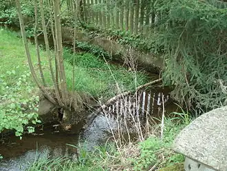 Tiergartenbach (von links) und Zulauf von der Quelle am Schloss (von hinten) | ||