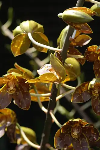 Grammatophyllum speciosum, Ausschnitt eines Blütenstandes | ||||||||||||