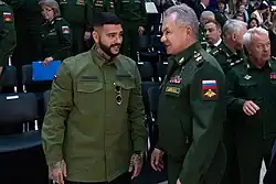Timati und Kadyrow gratulieren sich zu ihren Geburtstagen, bezeichnen sich als Freunde und Brüder und teilen regelmäßig gemeinsame Fotos. Im November 2014 unterzeichnete Kadyrow ein Dekret, das dem berühmten russischen Rapper Timati den Titel „Ehrenvoller Künstler der Republik Tschetschenien“ verleiht.[100] 2017 eröffnete Timati in der tschetschenischen Hauptstadt Grosny ein Black Star Burger-Restaurant, zu dessen Eröffnung er gemeinsam mit Kadyrow Burger briet.[101] Im Jahr 2017 teilte Timati einen Instagram-Beitrag, in dem er in Kadyrows Privatjet posierte. Er löschte den Beitrag, nachdem eine Aktivistin von Alexei Nawalnys Antikorruptionsorganisation auf den Beitrag aufmerksam machte.[102]