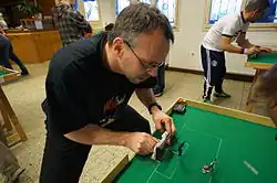 Im Deutschen Tipp-Kick-Verband (DTKV) sind Tipp-Kicker aus Deutschland organisiert. Es gibt rund 50 Vereine[6] mit 649 (Stand Spielzeit 2010/2011)[7] aktiven Spielern mit einer großen Bandbreite bezüglich des Alters (10 bis 70 Jahre).