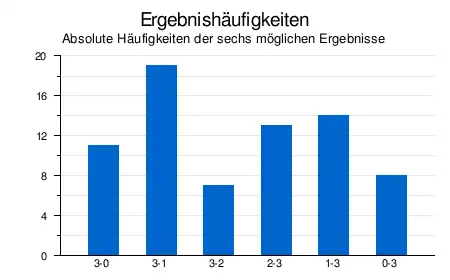 Die Kreuztabelle stellt die Ergebnisse aller Spiele dieser Saison dar. Die Heimmannschaft ist in der linken Spalte, die Gastmannschaft in der oberen Zeile aufgelistet. Insgesamt gab es 37 Heim- und 35 Auswärtssiege.