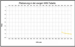 | 3 WM-Spiele 0 Siege 0 Unentschieden 3 Niederlagen 1:6 Tore | |