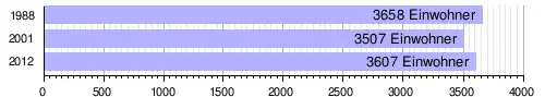 Im Hauptort lebten bei der Volkszählung 2012 3607 Einwohner in 507 Haushalten,[1] bei der Volkszählung 2001 3507 in 378 Haushalten[7] und bei der Volkszählung 1988 3658 in 526 Haushalten.[8]