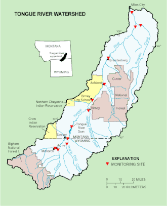 - ↑ a b USGS 06308500 Tongue River at Miles City, MT