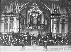 1868 bildete sich die Tonhalle-Gesellschaft, welche den 1862 gegründeten Orchesterverein von etwa 30 Instrumentalisten, meist Liebhabern, übernahm, der nun zum Tonhalle-Orchester wurde. Von der Stadt mietete die Tonhalle-Gesellschaft das Gebäude. Die Chöre waren treibende Kräfte, so der 1841 als Männerchor gegründete Sängerverein Harmonie Zürich, und der 1863 gegründete Gemischte Chor Zürich, der von Friedrich Hegar geleitet wurde. Hegar wurde im Tonhalle-Orchester erster Geiger, dann Kapellmeister und hat während fast vier Jahrzehnten als Dirigent, auch als Komponist und Direktor des Konservatoriums, das Musikleben Zürichs geprägt.[6]